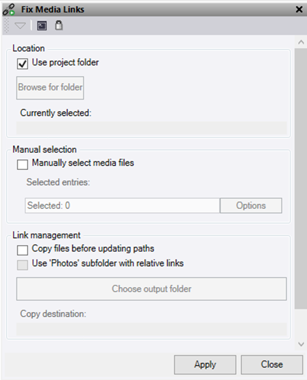 - If the “Use project folder” option is selected, then it will scan the project folder and subfolders to match all the images to the media folders in the project.