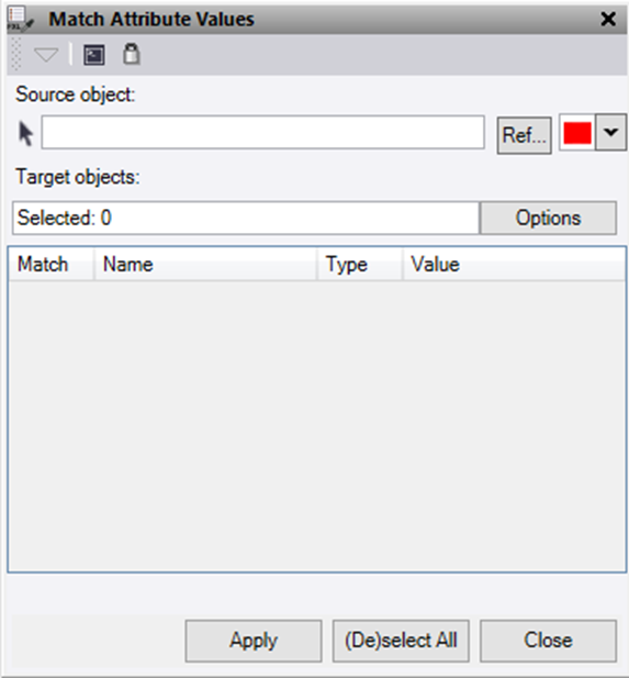 - Click in the Target objects field and then in a graphic view select the data you want to match the attribute values onto. Click Options button for additional selection options.
