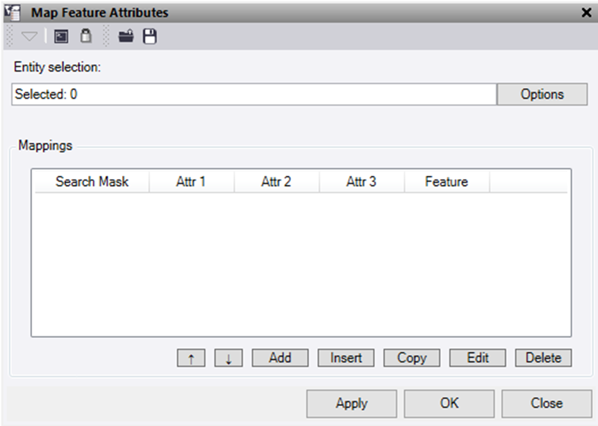 The Map Feature Attributes command enables you to create a mapping rule set which will select a group of objects using all or part of an object name, code or feature (using the wildcard asterisk "*") and apply a new feature and predefined attribute values to those objects simultaneously. These rule sets can then be saved and reused as needed.